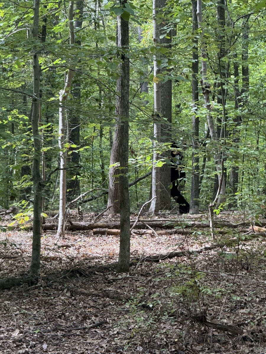 One highlight of Occoneechee’s trails is a hidden Bigfoot cutout tucked along the way. I almost mistook it for a strange shape in the woods until I realized what it was. It’s a fun touch that adds some lightheartedness to the hike. Keep your eyes open!